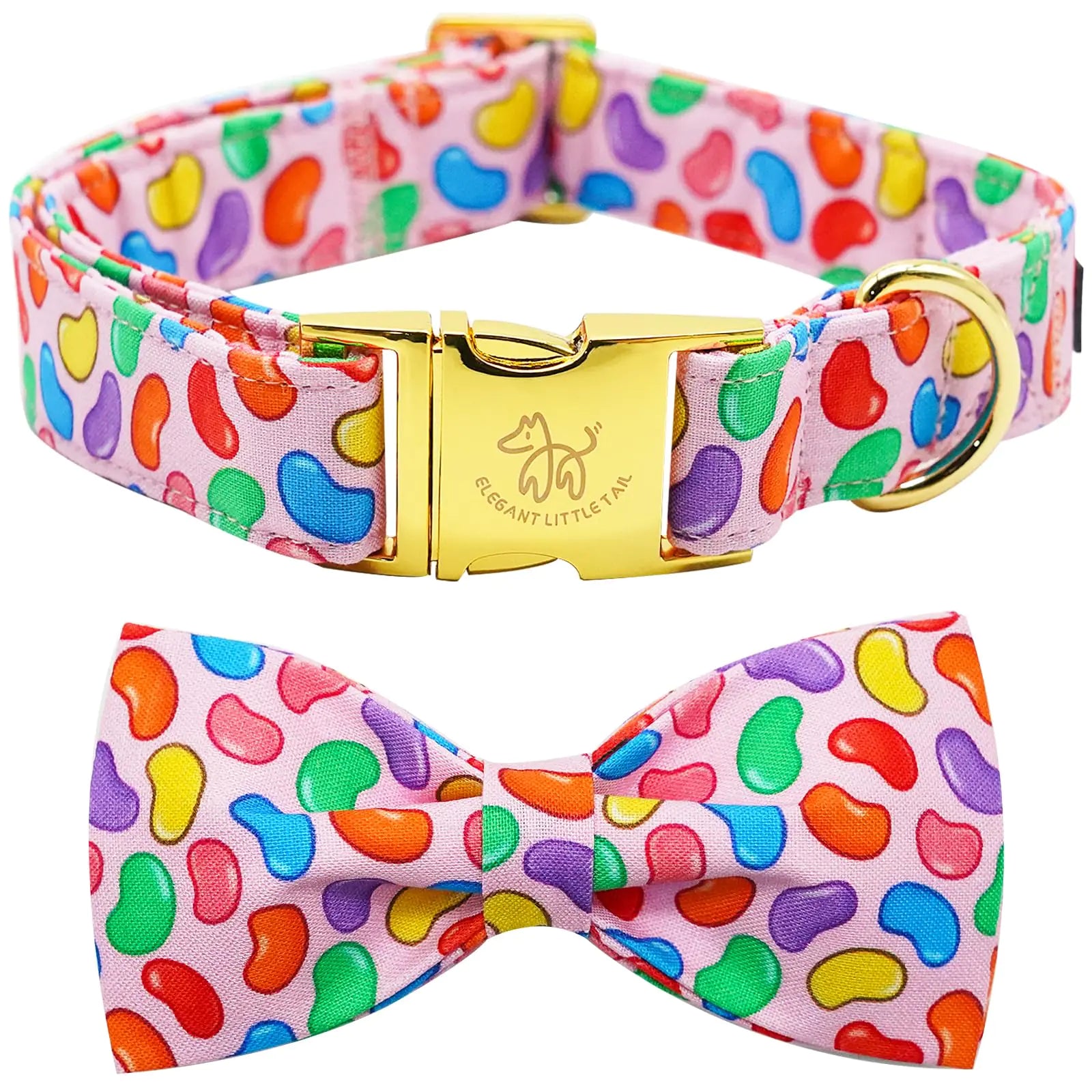 Elegant little tail Easter Day Dog Collar Dog Collar with Bow Colorful Candy Print Dog Collar Pink Pet Collar Gift Dog Bowtie Adjustable Dog Collar for X-Large Dogs