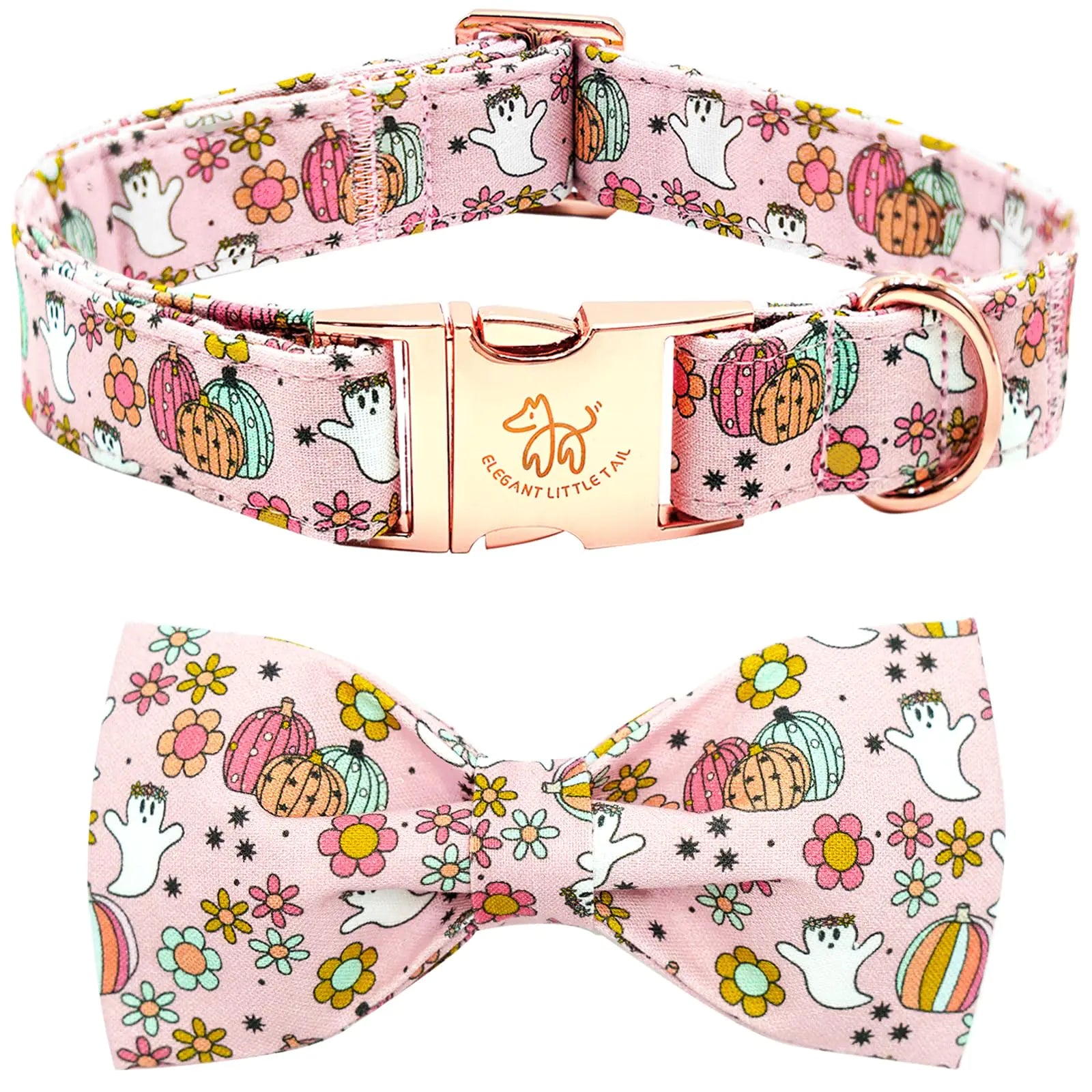 Elegant little tail Fall Dog Collar Halloween Dog Collar Pet Collar Flower with Pumpkin Dog Pet Collar with Bowtie Cotton Girls Boys Adjustable Dog Collar for Large Dogs